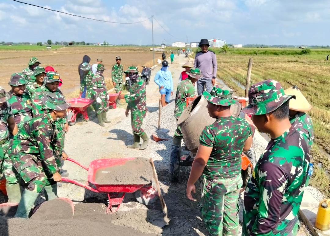 Pati, Nasionalreview– Satuan Tugas TNI Manunggal Membangun Desa (TMMD) Reguler ke-128 Kodim Pati bersama warga tetap melanjutkan pekerjaan pembangunan meski pada hari libur di Desa Godo, Kecamatan Winong, Kabupaten Pati, Minggu (26/04/2026).
