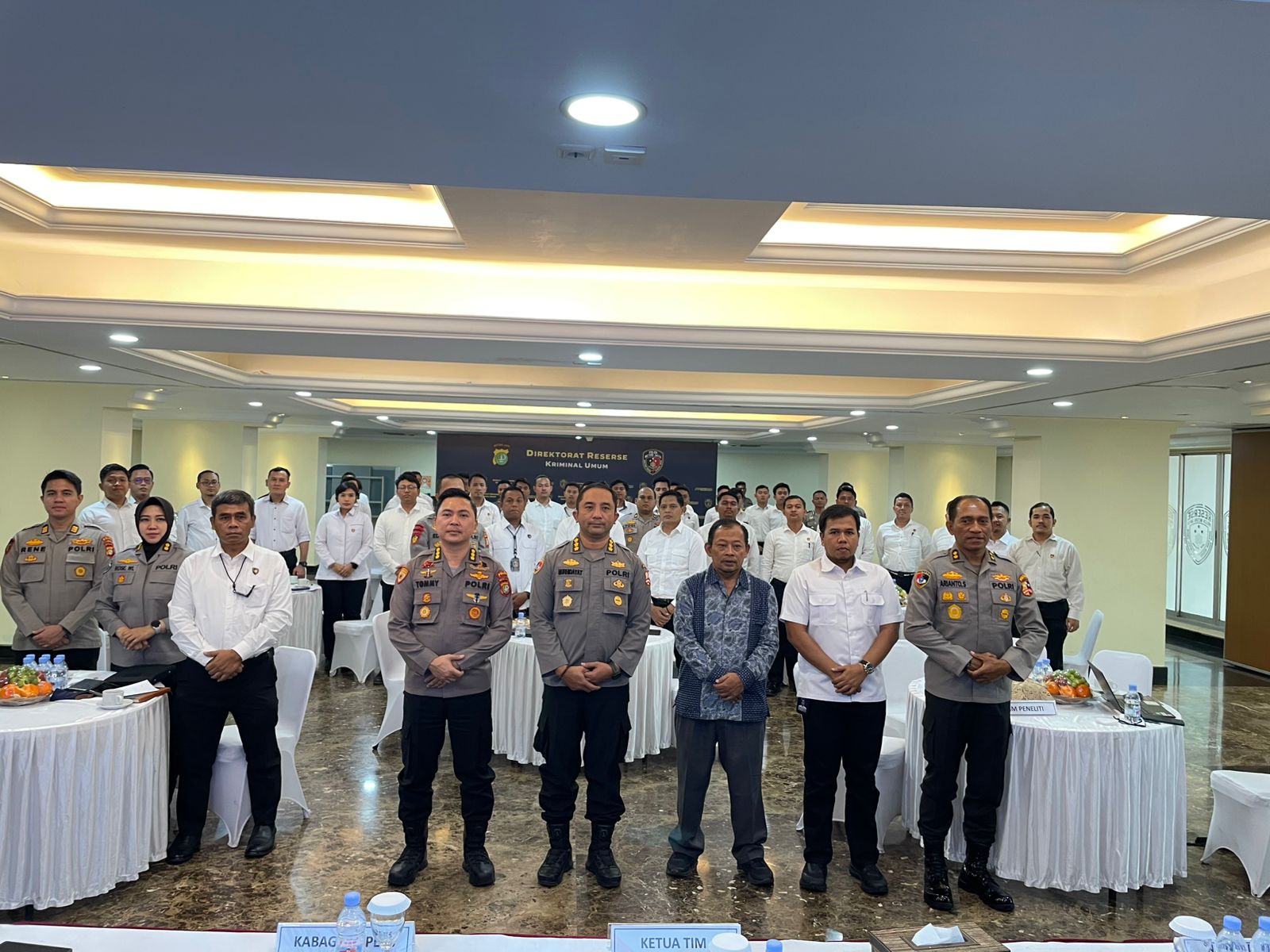FGD tersebut dipandu oleh Kombes Pol Moh. Nurhidayat, S.H., S.I.K., M.M. selaku Ketua Tim, menghadirkan narasumber Moch. Nurhasim, S.IP., M.Si. dari Badan Riset dan Inovasi Nasional (BRIN) serta AKBP Arianto Salkery, S.H., M.H. Turut mendampingi Kombes Pol Saufi Salamun, S.I.K., M.Si selaku narasumber dari Pusiknas Bareskrim Polri. Terlihat juga Kabag Dalpers PMJ Kombes Tommy Ferdian yang baru mendapatan kenaikan pangkat dari AKBI menjadi Kombes Polisi.